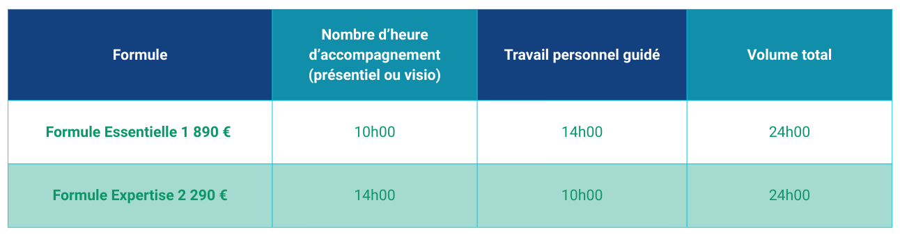 Travail personnel guidé : ce volume horaire (recherches, enquêtes, réflexion) est indispensable pour garantir l'appropriation de la démarche et l'envol vers votre nouvelle carrière.