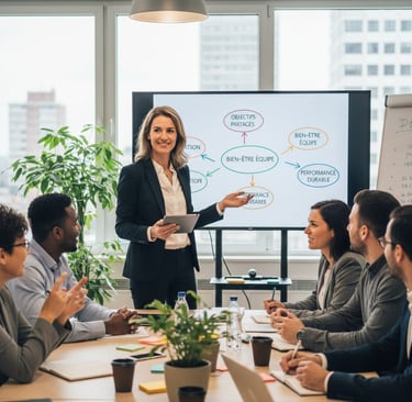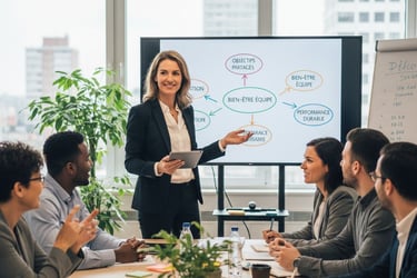 Approche humaine & accompagnement : je suis coach certifiée. J'interviens sur le levier le plus puissant : l'humain, pour transformer le bien-être, le changement et l'engagement de vos équipes en performance pérenne.