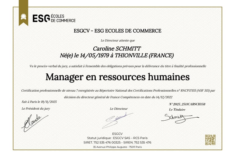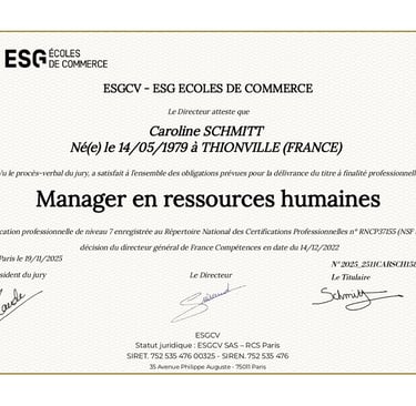 8 ans en tant que Consultante RH expérimentée et titulaire d'un MBA (Master of Business Administration). Je parle le langage de la stratégie d'entreprise et des résultats.